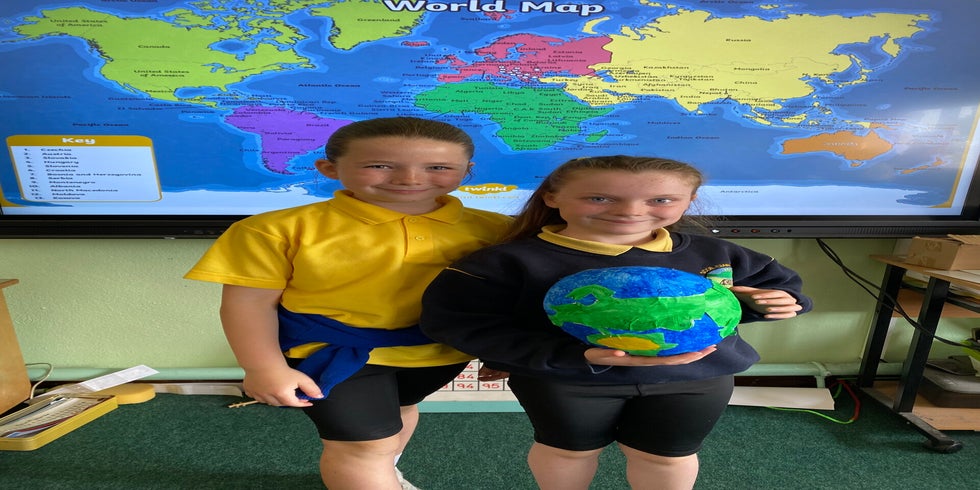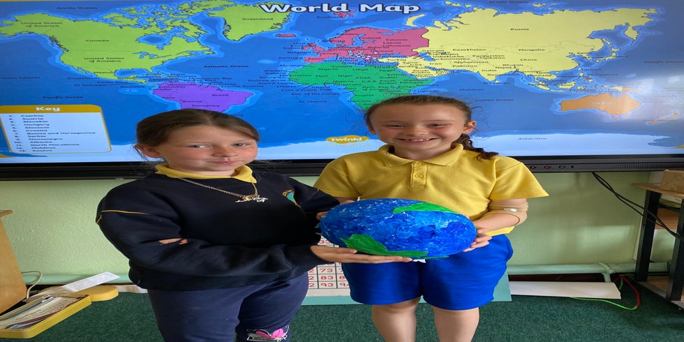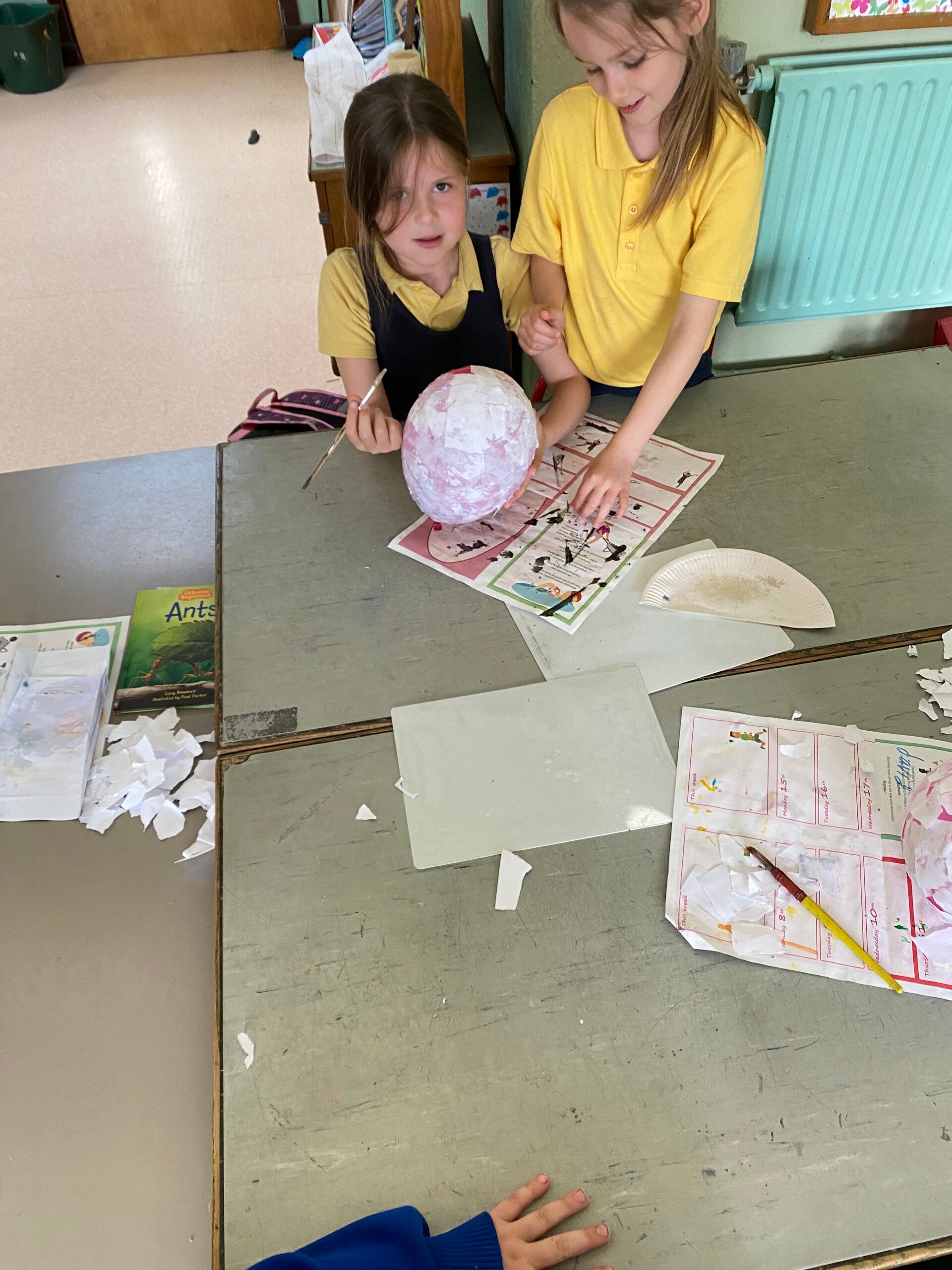 We had been learning about the earth in our geography and science classes so we set about making one in our class. We tried using the papiêr maché technique and had a lot of fun putting them together.