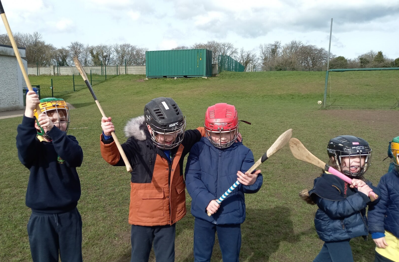 Junior and Senior infants have a new trainer for PE, and last week they got to practice their Hurling skills with trainer Seán. They got to try out the new carbon fibre hurls which we are very grateful to have received here in Boher! We are hugely appreciative to the local donor who provided these hurls for us, and also to Ballycumber GAA for donating customised helmets. This means that every child in the school will get to try out their skills.