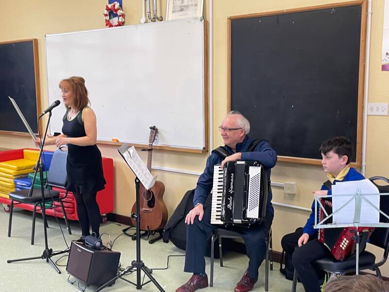A Comhaltas Session took place on Friday 3rd March, 2023 for all the children in the school. Dancing, music and singing was performed by Ms Dunne while the accordion was played by Jacob Devine (5th Class pupil) and his Grandfather, Leo Reddy.